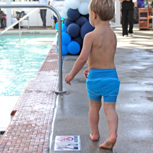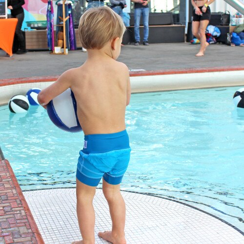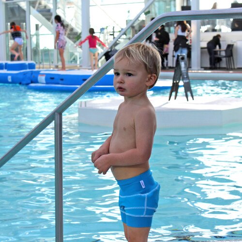 Double the layers, double the protection. Say goodbye to accidents in the pool with the help of the Double Swim Diaper. This reusable swim diaper features snug bands around the waist and legs to create a secure fit and contain solid waste. Gently woven polyester and spandex bands are soft and safe on babies' skin. Does not contain any PVC or harmful materials. UPF 50+ keeps harmful UV rays away from sensitive areas. A variety of sizes allow for a comfortable full range of motion. Hand wash only.