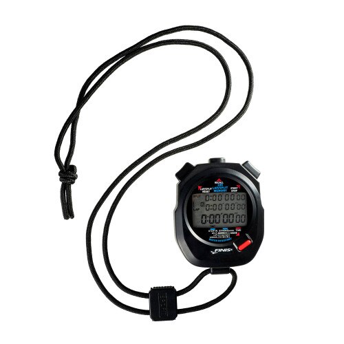 Allows the user to take 100 splits and review both cumulative and lap splits on a three-line LCD display. Easy-to-read running times, current lap time and cumulative splits.